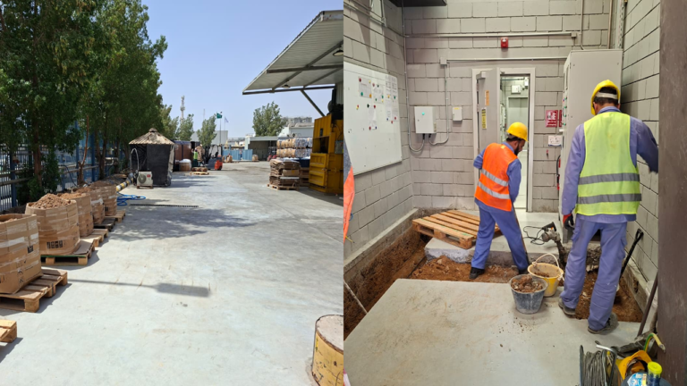 Ongoing floor renewal project involving civil and plumbing works to enhance durability and functionality within an industrial facility.